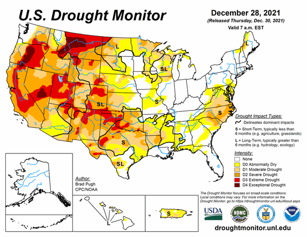 The end of 2021 brings both good and bad news for drought across the U.S.