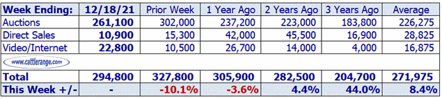 Weekly Feeder & Stocker Cattle Marketings for week ending 12/18/21