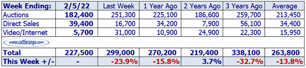 Weekly Feeder & Stocker Cattle Marketings for week ending 02/05/22