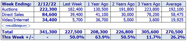Compared to previous week, steers and heifers sold 5.00 to 9.00 higher. Demand continues to be good to very good nationwide this week as there weren’t any winter storms to disrupt the marketing flow of cattle. The best demand was for the mid to lighter weight cattle that would be suitable for grazing once grass arrives; the calendar has now moved to the middle of February and turn out time will be here before ranchers realize.