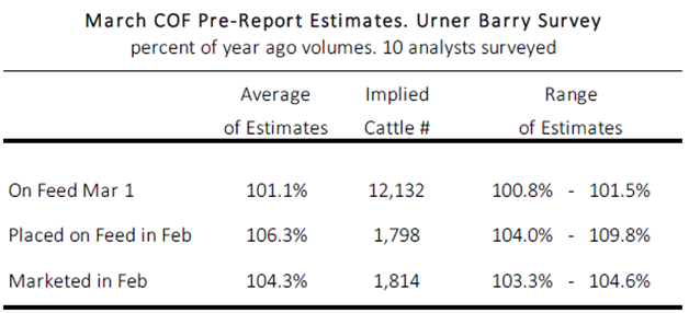 March ‘Cattle on Feed’ Pre-Report Estimates