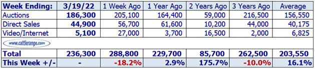 Data released by USDA on March 21st for the week ending March 19th.
