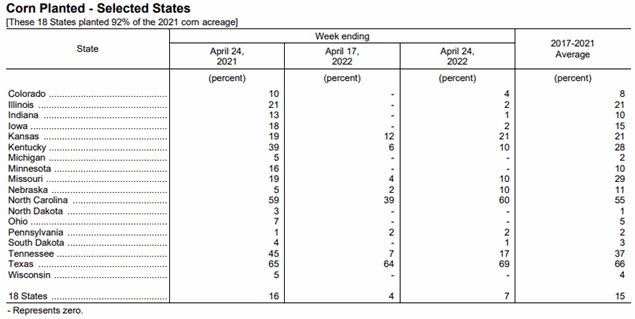 Corn Crop Condition as of 4/25/22