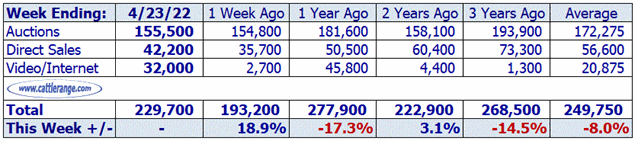 Data released by USDA on April 25th for the week ending April 23rd...