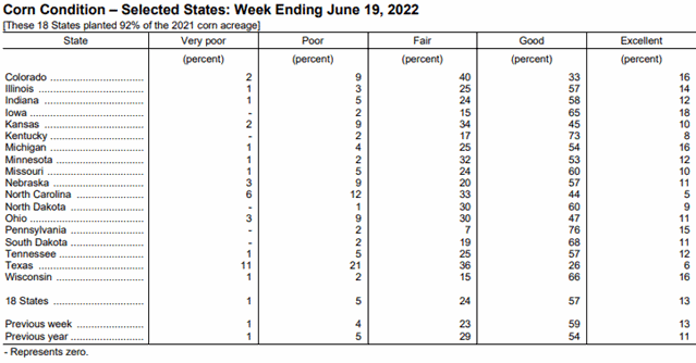 70% of Corn Condition rated at Good to Excellent compared to 65% a year ago.