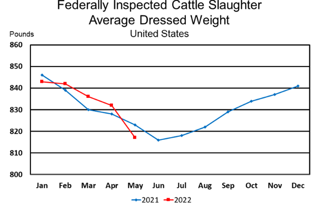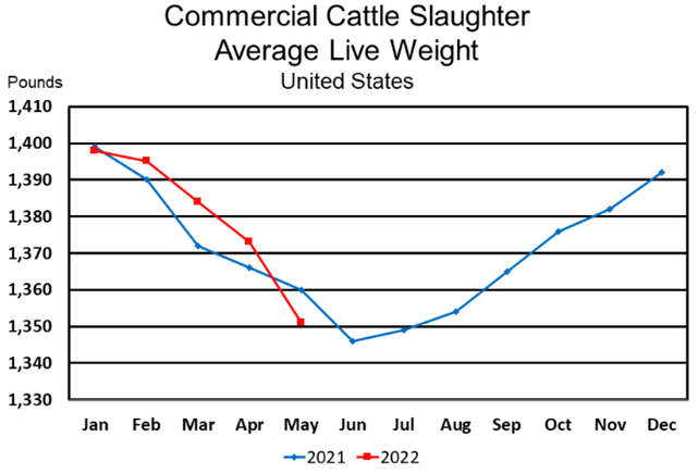 Total red meat supplies in freezers on May 31, 2022 were down slightly from the previous month but up 20 percent from last year.