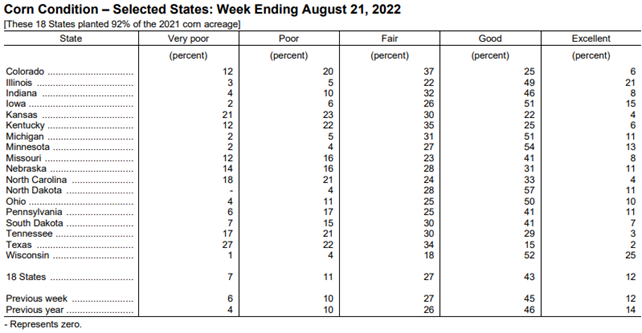 Corn Crop Condition as of 8/21/22