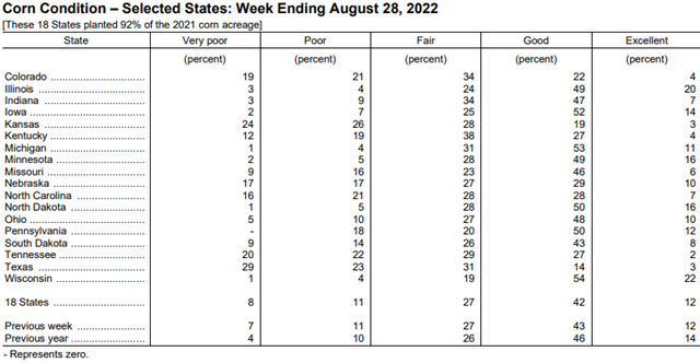 54% of Corn Condition rated at 'Good to Excellent' compared to 55% Last Week