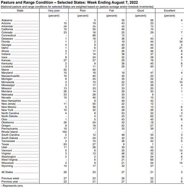76% of Pasture & Range Conditions rated 'Fair to Very Poor' compared to 75% Last Week.