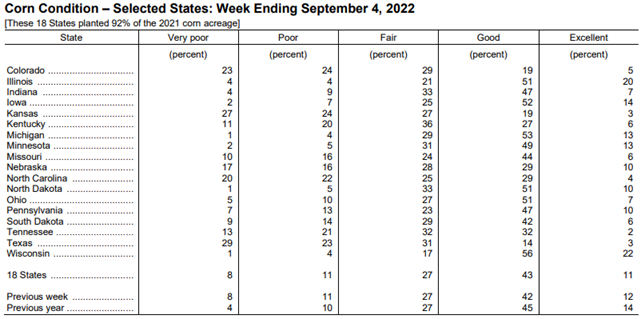 54% of Corn Condition rated at 'Good to Excellent'....Unchanged from Last Week