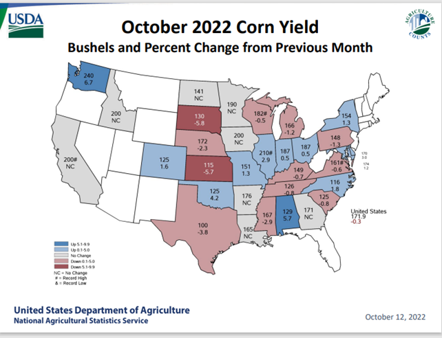 COARSE GRAINS: This month’s 2022/23 U.S. corn outlook is for reduced supplies, greater feed and residual use, lower exports and corn used for ethanol, and smaller ending stocks. Corn production is forecast at 13.895 billion bushels, down 49 million on a reduction in yield to 171.9 bushels per acre. Corn supplies are forecast at 15.322 billion bushels, a decline of 172 million bushels from last month, as lower production and beginning stocks are partially offset by higher imports. Exports are lowered 125 million bushels reflecting smaller supplies and slow early-season demand. Projected feed and residual use is raised 50 million bushels based on indicated disappearance during 2021/22. Corn used for ethanol is lowered 50 million bushels. With supply falling more than use, corn ending stocks for 2022/23 are cut 47 million bushels. The season-average corn price received by producers is raised 5 cents to $6.80 per bushel.