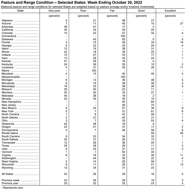 77% of Pasture & Range Conditions rated 'Fair to Very Poor' compared to 78% Last Week.