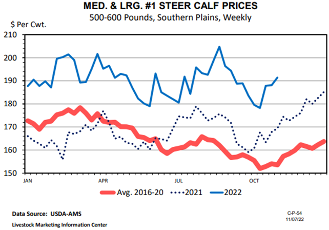 Northern Plains feeder cattle auctions have enjoyed $200+ per cwt prices for calves this fall while the southern tier of the U.S. prices have eased quite a bit lower.