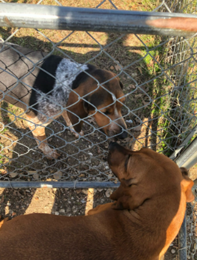 Runnels, at top, and Cheaps, lower, were trained over seven months to discriminate nasal swabs collected from cattle at the McGregor Research Station that developed bovine respiratory disease symptoms. (Texas A&M AgriLife photo by Aiden Juge)