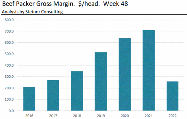 This set the stage for the rally in round prices in Jan/Feb, helping clean up spot supply availability. This year forward sales the first week of December are no different than the previous three weeks. The weakness in the cutout comes at a time when packers continue to pay up for cattle, resulting in significant margin compression.
