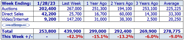 Data released by USDA on January 30th for the week ending January 28th...