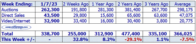 Data released by USDA on January 9th for the week ending January 7th...