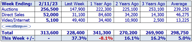 Data released by USDA on February 13th for the week ending February 11th...