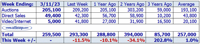 Data released by USDA on March 13th for the week ending March 11th...