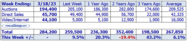 Data released by USDA on March 20th for the week ending March 18th...