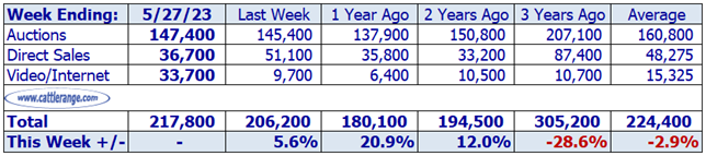 Data released by USDA on May 30th for the week ending May 27th...