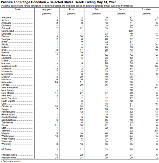 Pasture & Range Conditions as of 5/14/23