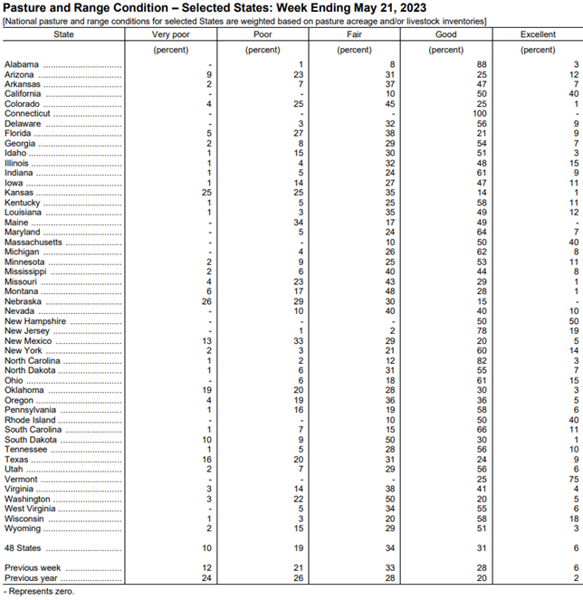 Pasture & Range Conditions as of 5/21/23