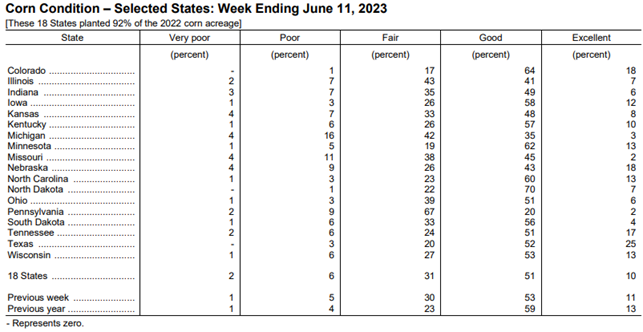 61% of Corn Crop rated as Good to Excellent Condition compared to 64% last week and 72% last year...