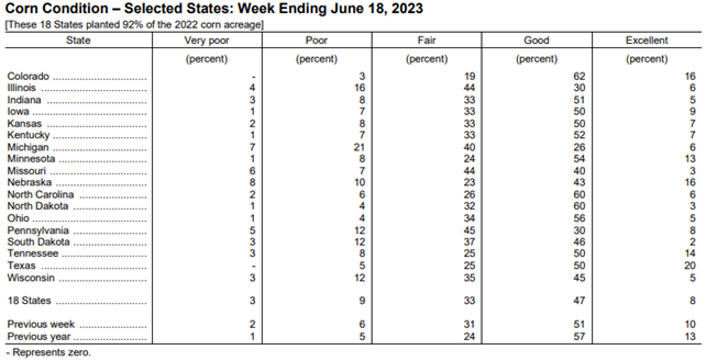 55% of Corn Crop rated as Good to Excellent Condition compared to 61% last week and 70% last year...