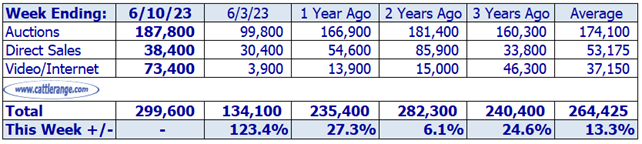 Data released by USDA on June 12th for the week ending June 10th...