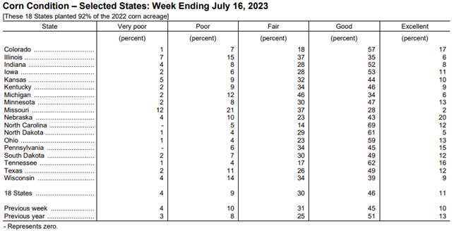 57% of Corn Crop rated as Good to Excellent Condition compared to 55% last week and 64% last year...