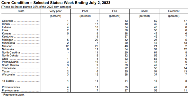 Corn Crop Condition as of 7/2/23