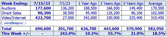 Data released by USDA on 7/17/23 for the week ending 7/15/23...