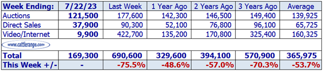 Data released by USDA on 7/24/23 for the week ending 7/22/23...