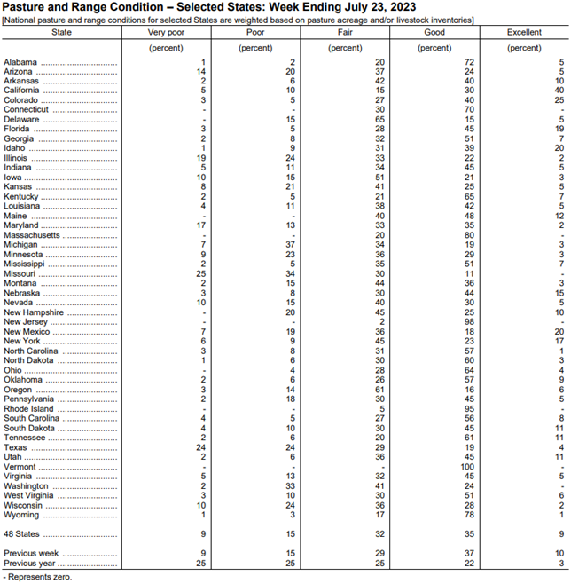 Pasture & Range Conditions as of 7/23/23