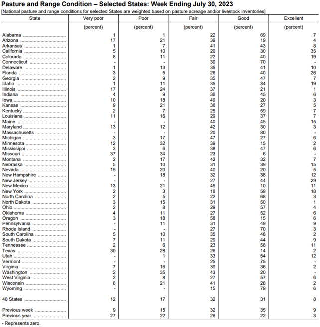 39% of Pasture & Range Conditions rated 'Good to Excellent' compared to 44% Last Week and 25% Last Year...