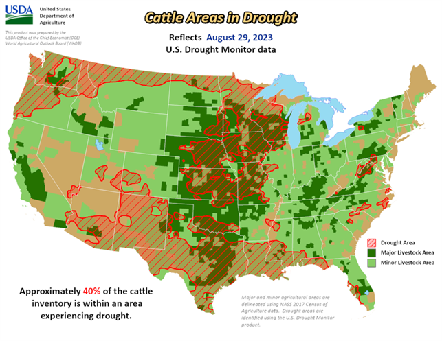 As of August 29, 2023, 28.76% of the U.S. and Puerto Rico and 34.28% of the lower 48 states are in drought, according to the U.S. Drought Monitor.
