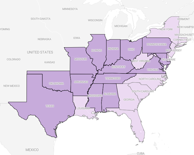 This map shows the range of black vultures across the U.S. as of 2023. According to the Cornell Lab of Ornithology, black vultures are short-distance migrant birds, which means they make relatively small movements when migrating in the winter, staying close to favorable conditions.