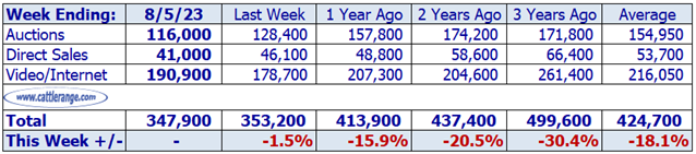 Data released by USDA on 8/7/23 for the week ending 8/5/23...