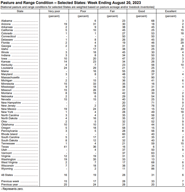 37% of Pasture & Range Conditions rated 'Good to Excellent' compared to 40% Last Week and 23% Last Year...