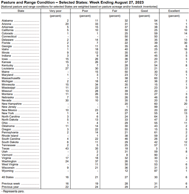 36% of Pasture & Range Conditions rated 'Good to Excellent' compared to 37% Last Week and 25% Last Year...