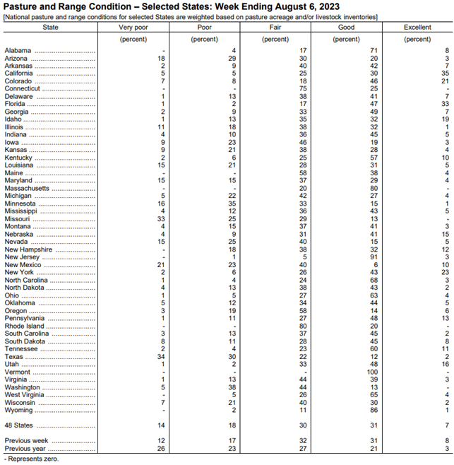 Pasture & Range Conditions as of 8/6/23
