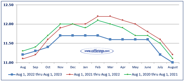 Cattle on Feed in 1,000+ Capacity Feedlots as of August 1st