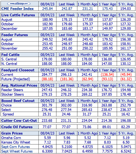CME Feeder Cattle Index: 245.84, 2.97 higher than last Friday.