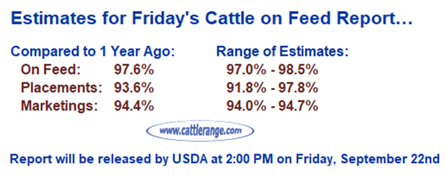 Estimates for Friday's Cattle on Feed Report