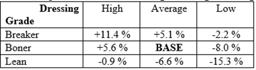 Table 1. Impact of Grade and Dressing Percentage on Slaughter Cow Value
