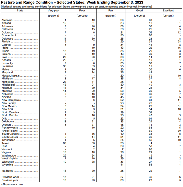 Pasture & Range Conditions as of 9/3/23