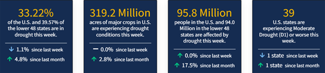 As of October 17, 2023, 33.22% of the U.S. and Puerto Rico and 39.57% of the lower 48 states are in drought, according to the U.S. Drought Monitor.