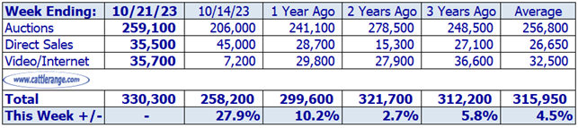 Data released by USDA on 10/23/23 for the week ending 10/21/23...