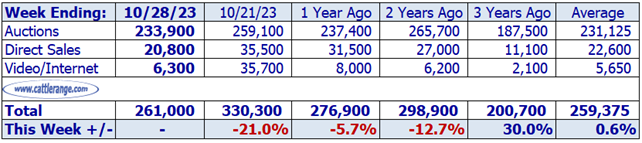 Data released by USDA on 10/30/23 for the week ending 10/28/23...
